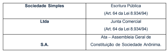 – Pessoa jurídica: acompanhado do respectivo contrato social ou estatuto, bem como a procuração conferida ao mandatário ou representante com poderes necessários (poderes de requerer e declarar), conforme o caso; e ainda apresentar certidão atualizada dos atos constitutivos, emitida há menos de 30 dias pela Junta Comercial (a fim de comprovar a legitimidade do sócio para requerer a averbação da unificação);